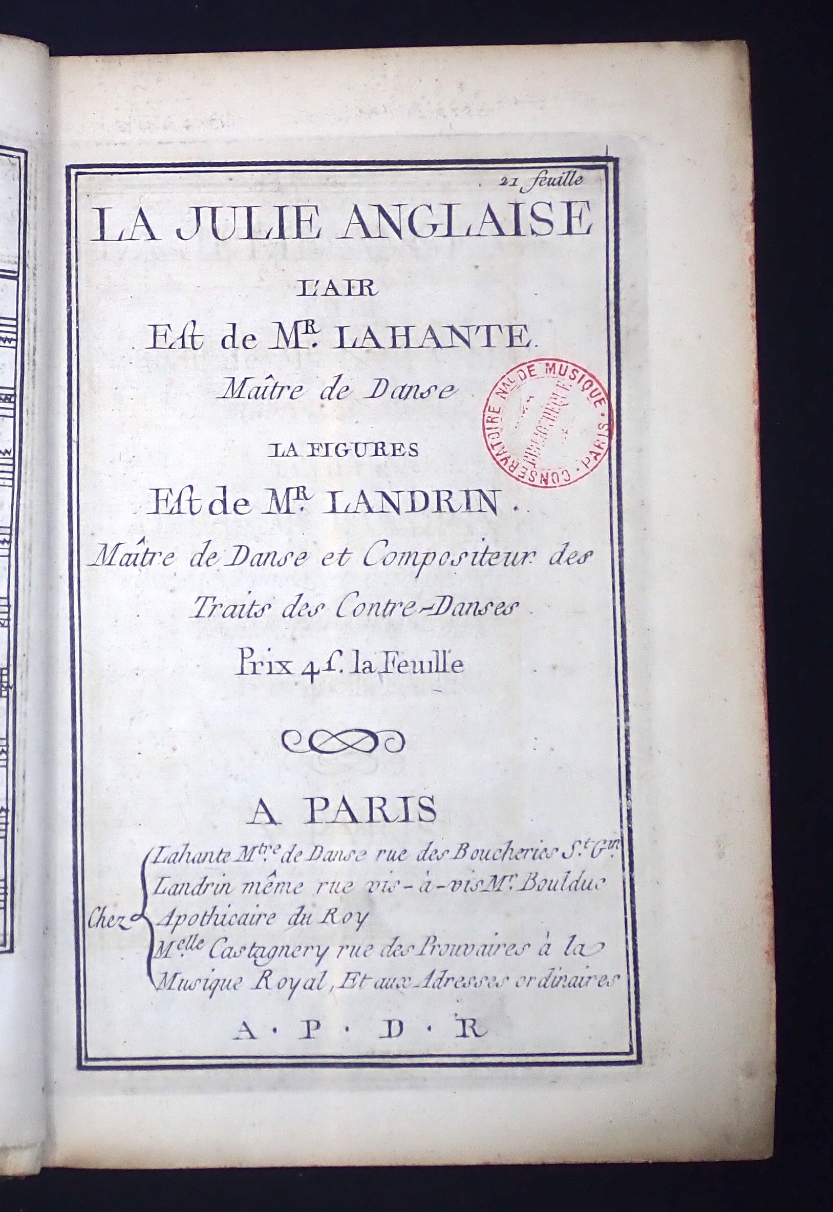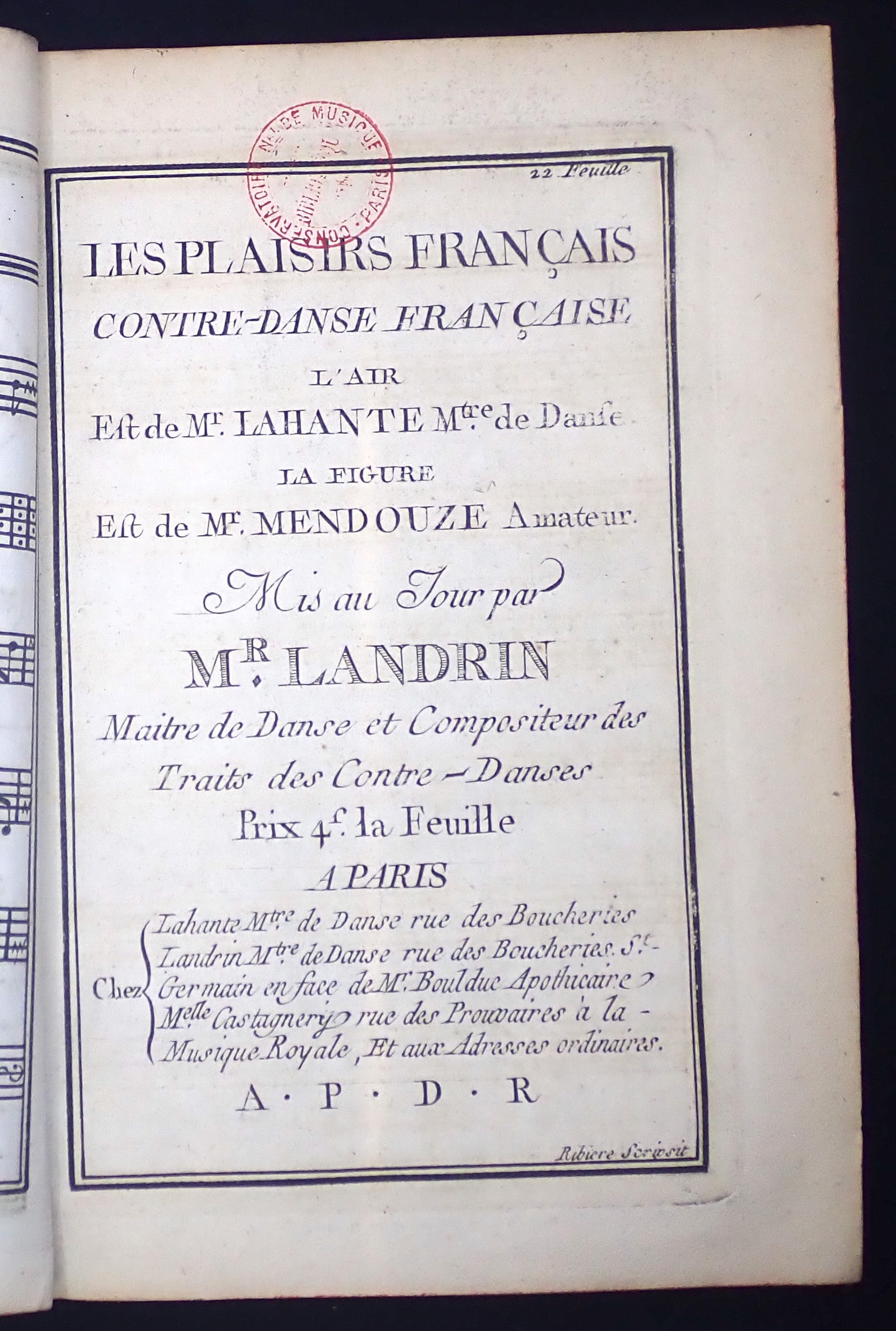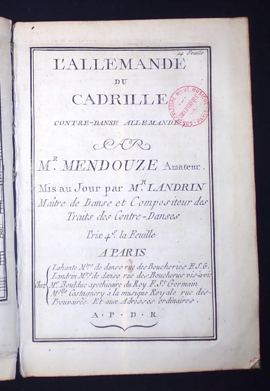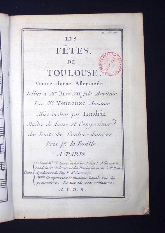 [Contredanses pour un instrument avec les figures] - BnF, Mus, D-11400