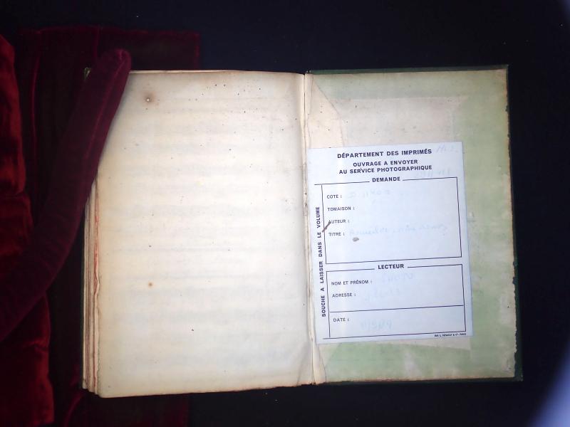 Reliure verte. Marque de collection tamponnée