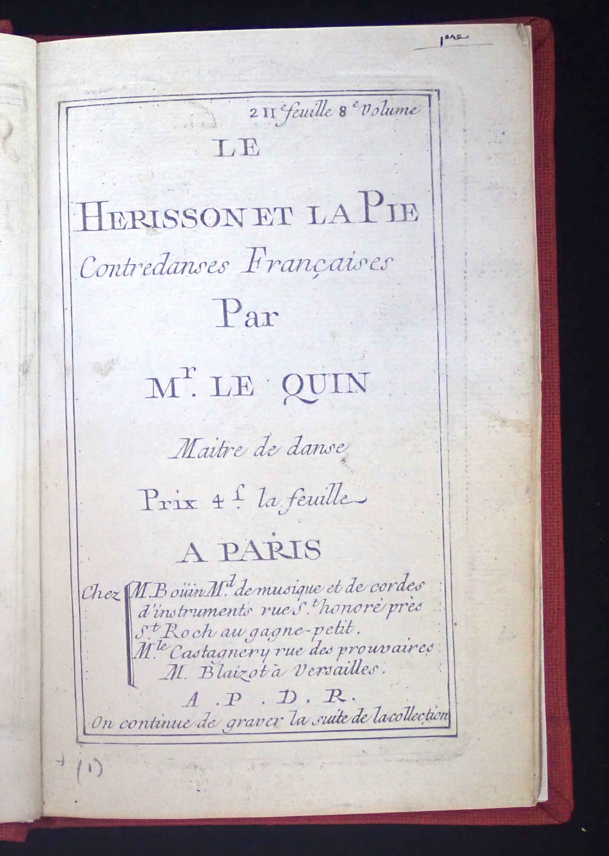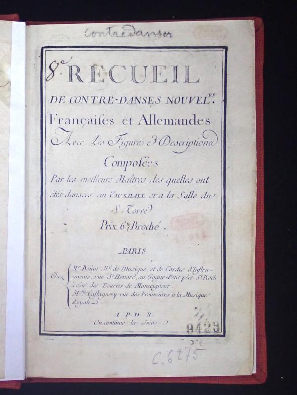 [8e Recueil de Contre-danses nouvelles] - BnF, BMO, C-6275