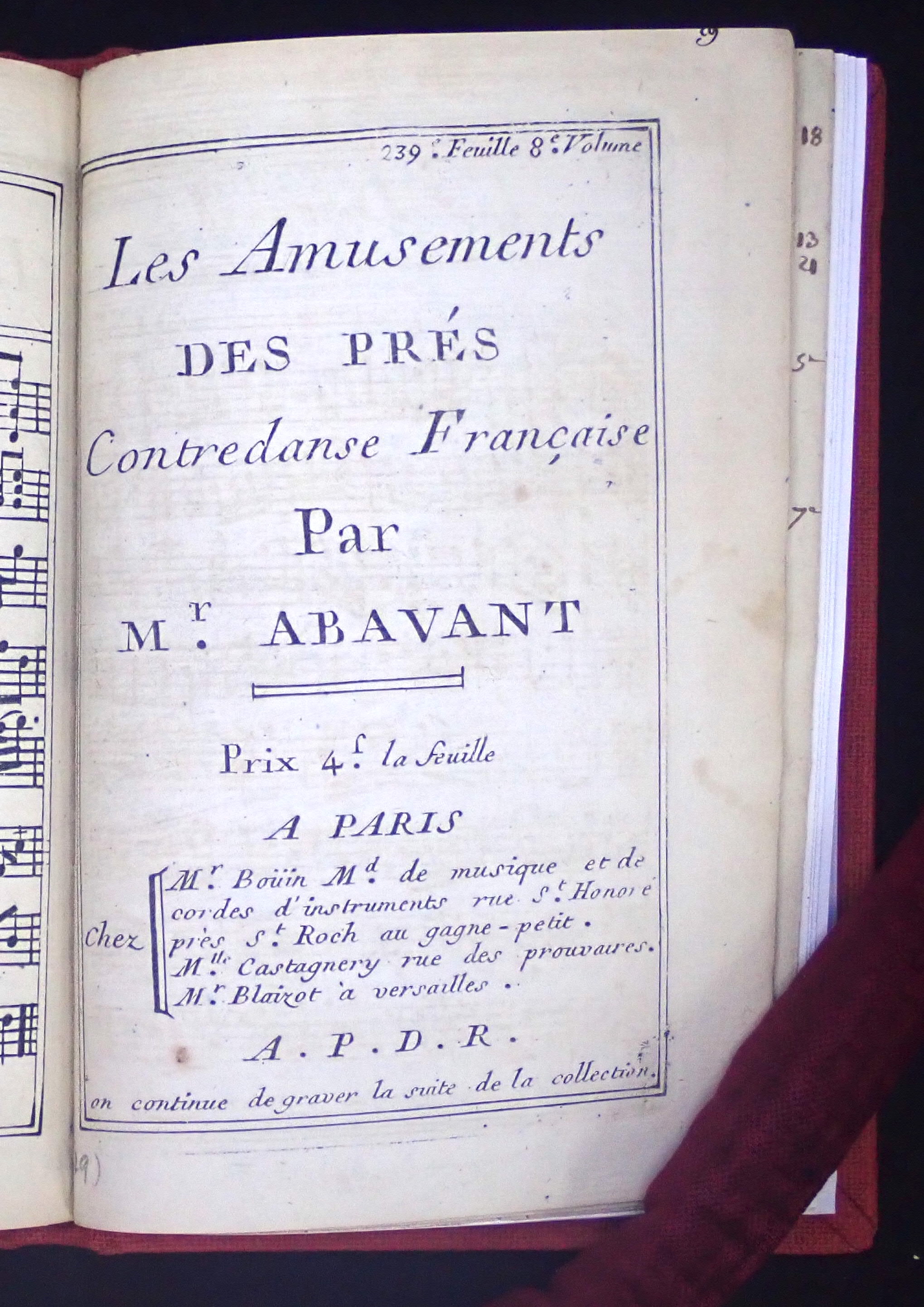 Numérotation des danses (tronquée lors de la reliure)
