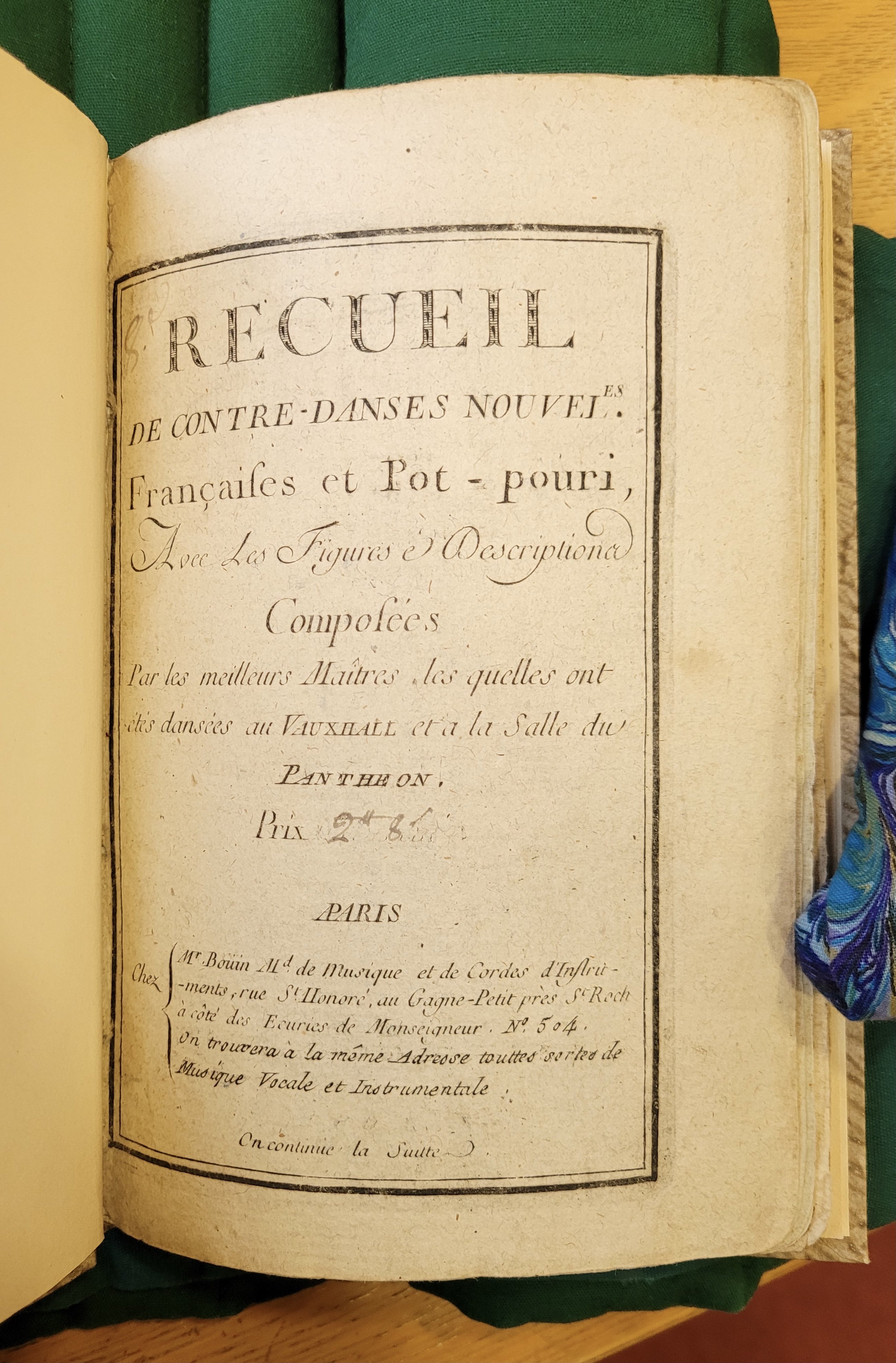 8e recueil de Contre-danses nouvelles françaises et pot-pourris, avec les figures é Descriptions, composées Par les meilleurs Maîtres des quelles ont étés dansées au VAUXHALL et à la Salle du PANTHEON